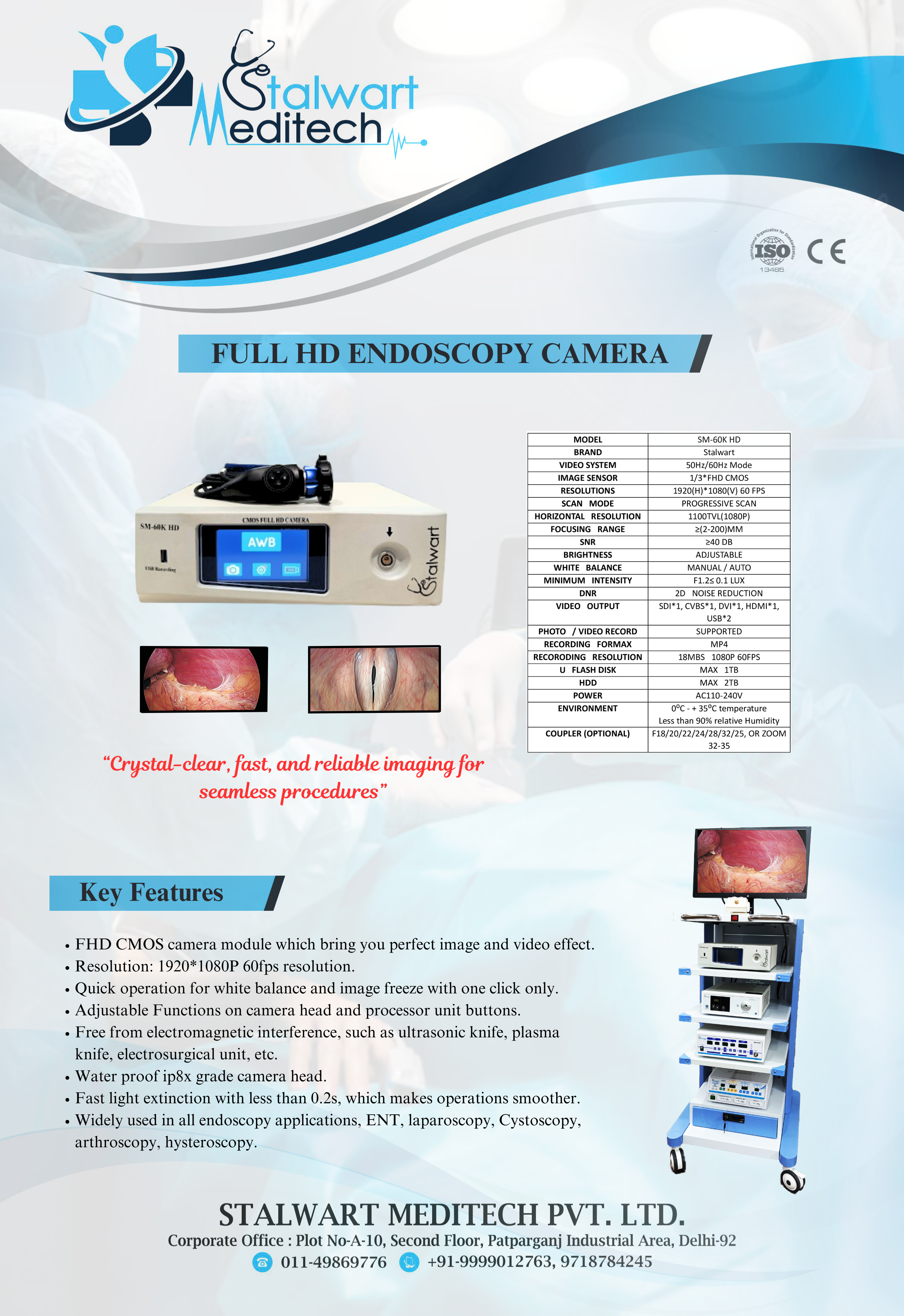 Widely used in all endoscopy applications, including ENT, laparoscopy, cystoscopy, arthroscopy, hysteroscopy